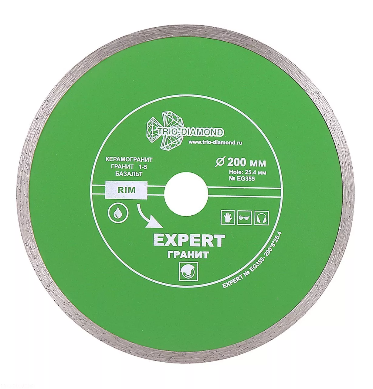 Особенности: диски со сплошной режущей кромкой, произведены методом горячего прессования. Обеспечивают гладкий ровный рез без сколов, применяются с водяным охлаждением.