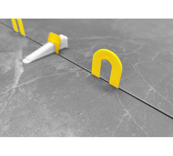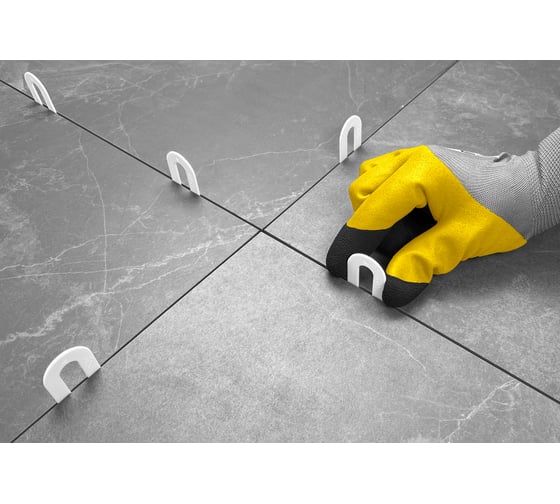 Установите зажимы необходимого размера между плиток; 2 В межплиточный шов установите подковы;
